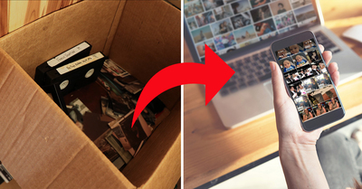 iMemories will digitize them for you. Just send in your tapes. They do the work and mail everything back. You get a private online library. Watch it on your phone, tablet, or TV. Share it with family.